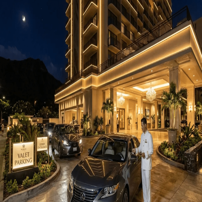 ホテルの「バレーパーキング」は、玄関で車を預けるだけでスタッフが駐車してくれるため、非常にスマートで楽である。限られた時間を有効に使い、スマートな身のこなしを実現するために、バレーパーキングを選択するのも一つの「正解」である。一方で、費用を抑えたい場合は、ホテル近隣の公共駐車場や、ワイキキ・バニヤンのような比較的安価な一般開放駐車場を利用するのも良いな選択肢。